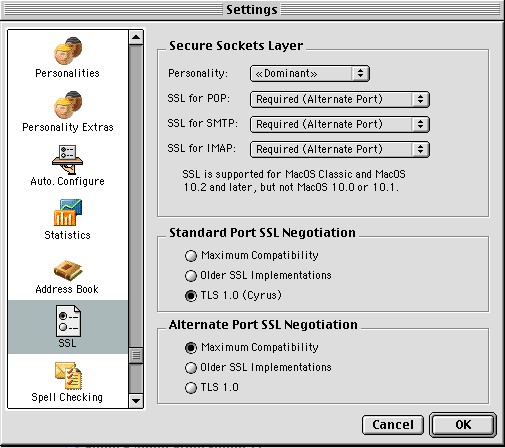 Secure Email Configuration Eudora Mac 9.2 |