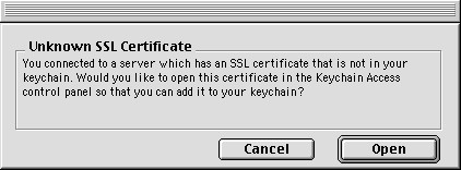 Step 11: Keychain Creation (Part 4) The newly-created SSL Certificate is unknown to your keychain; click "Open" to add it.