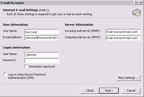 Outgoing mail Server (SMTP): type mail.4securemail.com