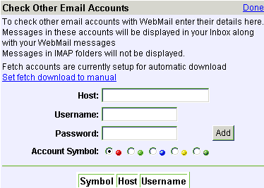 | You can use this to consolidate multiple email accounts from multiple email providers. Use this to check your other email accounts that you might have. The email from all accounts will be displayed in your INBOX folder.