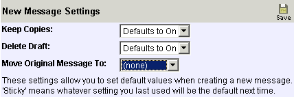 | Click on 'Settings for New Messages' to change the options when creating a new EMail messages |