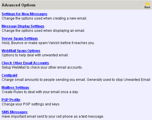 Advanced Options allow maximum flexibility of configuration for both your POP and WebMail secure email service.