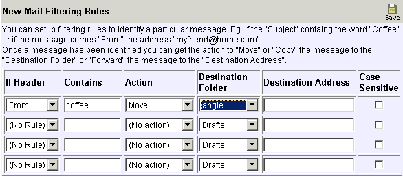 Set up filters to put emails into selected folders or forward them to another addresses.