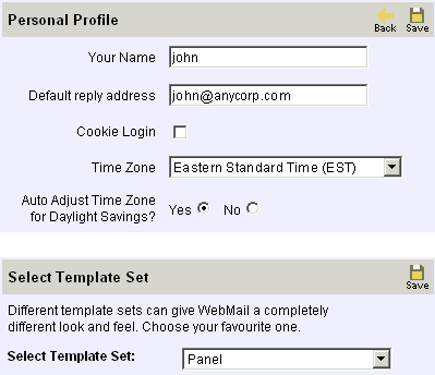 from the drop down list and change the look and feel of WebMail. Use the template set you
