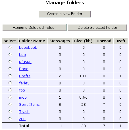 Beside each folder information is listed about the number of messages in the folder,